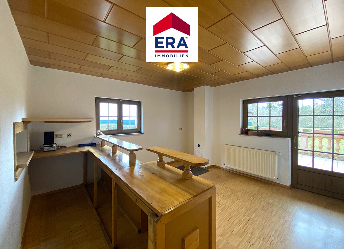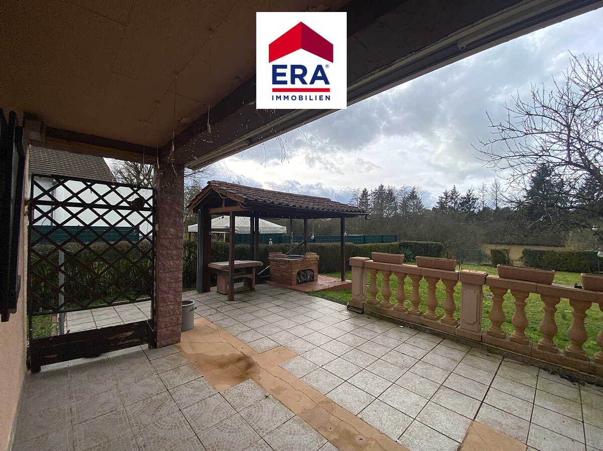 Der überdachte Terrassenbereich lädt zum gemütlichen Verweilen ein, ein überdachter Grillbereich ist ebenfalls vorhanden, der schöne Garten ermöglicht vielerlei Aktivitäten im Freien. Nach einigen Metern erreichen Sie zudem den Hirbacher Weiher mit seinen vielfältigen Angeboten.