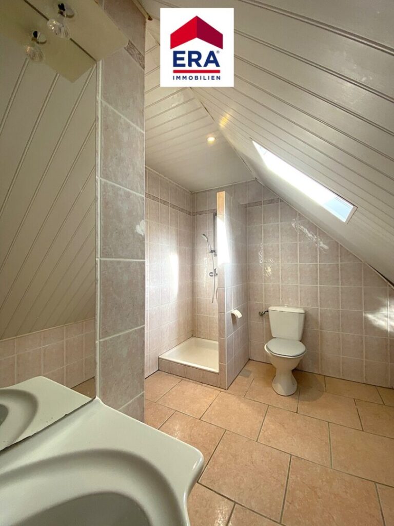 Im OG befinden sich ein Badezimmer mit Dusche, Waschbecken und WC, ein helles Schlafzimmer mit französischem Balkon, ein Durchgangsraum und 2 weitere Schlafzimmer.